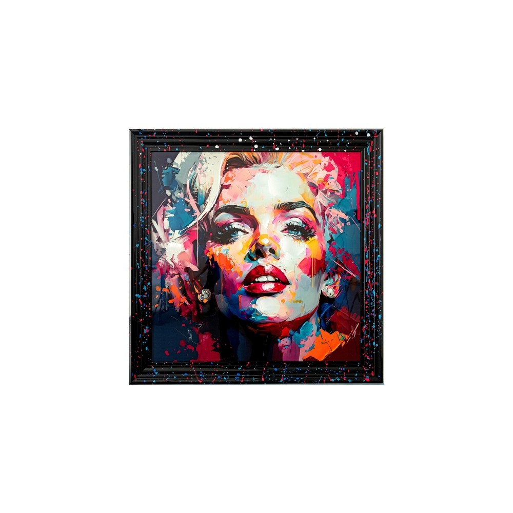 Tableau encadré représentant le portrait de la célèbre chanteuse et actrice version colorée avec débordements de peinture sur l'encadrement - Collection MIA